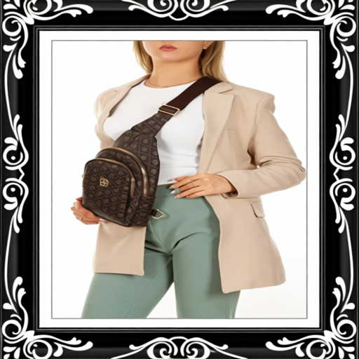 Women Brown Leather Monogram Crossbody Belt Chest And Shoulder Bag